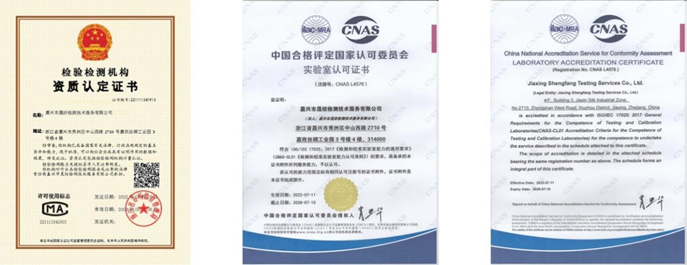 拥有CNAS和CMA双资质的晟纺检测,,,,,,,,是一家专业的第三方磨练检测机构,,,,,,,,是晟纺检测专业能力的展现,,,,,,,,也是pg麻将胡了丝绸工贸一体工业链上主要的一环。。。。。。
